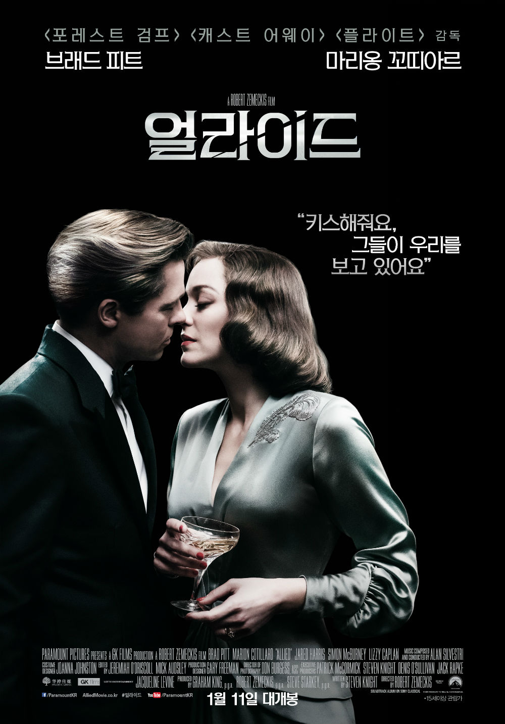 ‘얼라이드’가 1월 11일 개봉했다. 명장 로버트 저메키스의 연출작으로 브래드 피트와 마리옹 꼬띠아르 두 주연 배우의 캐스팅만으로도 화제를 모았던 작품이다. 로버트 저메키스 감독은 ‘얼라이드’를 통해 전쟁 중 펼쳐지는 가슴 아픈 비극적 사랑에 관한 이야기를 그렸다. 극중 남편은(브래드 피트) 사랑하는 아내(마리옹 꼬띠아르)를 스파이로 의심해야 하는 이야기를 통해 아무도 믿을 수 없는 전쟁의 현실 안에 비친 슬픔을 서스펜스적 구도로 유연하게 펼쳐준다.