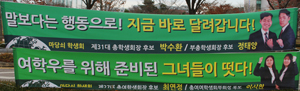 선거 공약 내용은 다음과 같다. ▲더하기 측 공약 △총학생회 청문회 제도 △단과대 학생회장 자치회비 마이너스 제도 △학생회 행사 구역 지정 및 홍보 진행 △단대 축구 올스타전 및 축구리그 실시△매달 넷째 주 수요일 밥버거 Day ▲청춘 측 공약 △매월 1회 설문조사를 하여 소통하기 △재학생들과 복학생을 위한 청춘오리엔테이션 실시 △체육 교양과목 확충 건의 △우리대학 체조제작 △학생복지위원회 자치기구 결성 ▲마당쇠 측 공약 △단과대학별 학생간담회 실시 △학내 마일리지 장학금제도 활성화 △제 1학생회관 식당개선 및 음식의 질 향상 △벼룩시장 개장 △안전귀가 서비스 실행