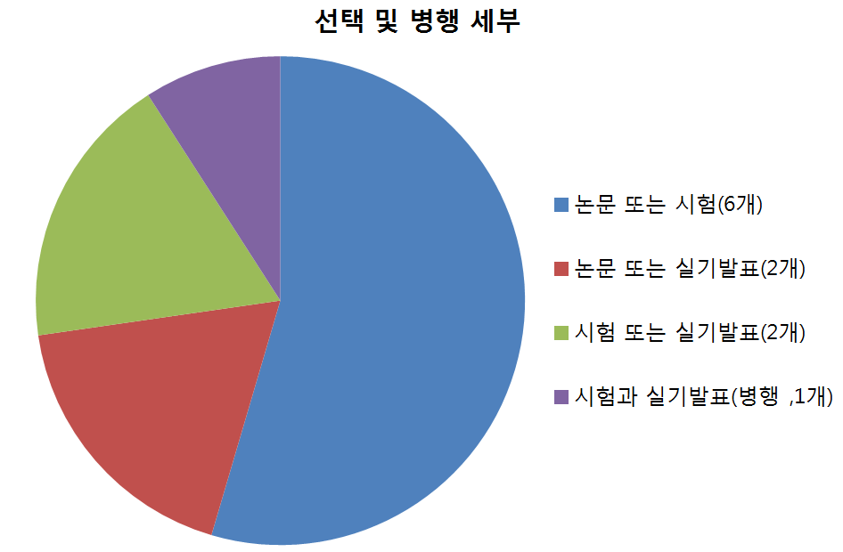 ▲선택 실시 △졸업논문&졸업종합시험 6개 △졸업논문&실기발표 2개 △졸업종합시험&실기발표 2개 ▲병행 실행 △졸업종합시험&실기발표 1개