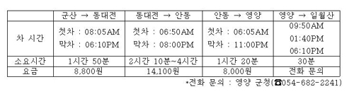 군산에서 영양에 가는 길은 조금 멀고 어렵다. 우리가 군산에서 영양에 가기 위해서는 일단 동대전에 도착 후 안동을 거쳐 영양으로 가는 시외버스를 타야한다.