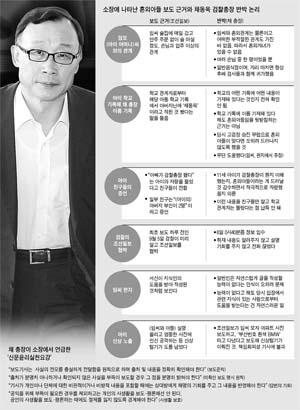 또, 신문의 보도 태도가 급변한 것에 대해 ‘비정상적’이라고 지적했다. 채 총장은 “의혹 보도가 선행되고 사실관계 확인에 따라 확정적 사실을 보도하는 게 순리인데 처음부터 ‘혼외자가 있다’고 단정적으로 보도하더니 임씨가 보도 내용이 사실이 아니라고 하자 그후부터는 ‘의혹’이라고 표현하면서 보도 태도를 바꿨다”고 했다.