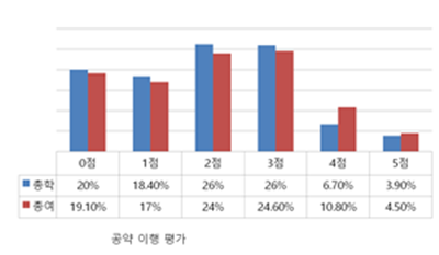 공약이 잘 이행되고 있는지를 물어보는 질문에 64.6%의 학우가 2점(5점 만점에 점수가 높을수록 만족도가 높음)이하의 점수를 선택했다. 3점을 선택한 학우는 25%였다.
