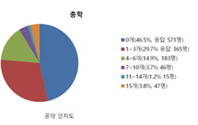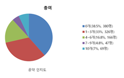 27대 총여학생회는 10개의 공약(표2 참고)을 약속했지만 학우들의 공약 인지도는 낮았다. 88.3%의 학우가 6개 이하의 공약을 알고 있었으며, 그 중 38.5%가 1개도 알지 못했다. 0개를 선택한 학우 중 48.6%가 ‘관심이 없다’고 이유를 밝혔다. 총여학생회의 공약이 잘 이행되는지에 대해 60.1%가 2점 이하의 점수를 줬다.