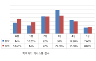 총여학생회의 학우들과의 의사소통 점수도 낮은 점수를 받았다. 2점 이하의 점수가 차지하는 비중이 59.9%에 달했다.