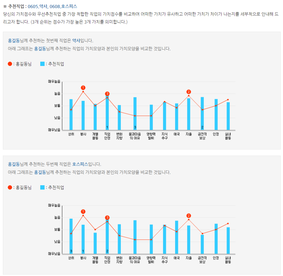 | ▲ 직업가치관 결과 예시 / 출처 : 워크넷 |