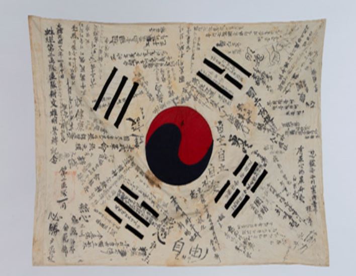 | ▲ 3·1운동 당시, 한국 광복군들의 서명이 적힌 태극기 / 출처 : 독립기념관 |