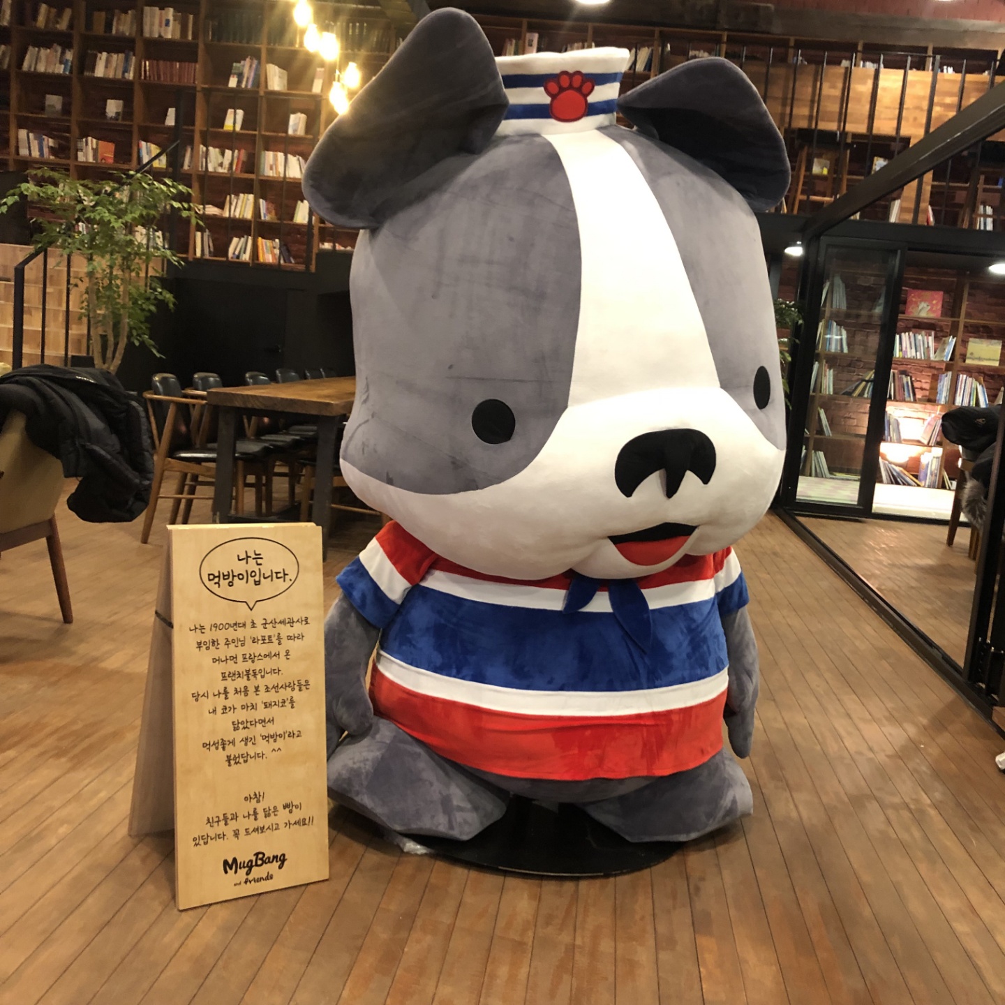 군산세관과 함께 새롭게 태어난 cafe먹방이와 친구들은 군산 근대역사박물관 근처이며, 정확히는 현 군산세관 맞은편에 있다. 카페 입구에는 먹방이와 친구들 판넬이 나란히 서 있어 어렵지 않게 발견할 수 있다. 카페를 들어서자마자 보이는 대형 먹방이와 찬찬히 내부를 둘러보다 보면 깔끔하고 세련된 분위기를 느낄 수 있다. 카페 내부는 2층으로 이루어져 있고, 한쪽에 서재가 마련되어 있어 독서를 즐기기에도 좋다. 하지만 그중에서도 필자는 ‘먹방이 집무실’이 인상 깊었다. 이곳에서는 먹방이 탈을 직접 쓰고 기념 촬영을 할 수 있다. 집무실 맞은편에는 캐릭터 ‘먹방이와 친구들’을 모티브로 한 다양한 물품이 배치되어 있다. 귀여운 디자인은 물론이거니와, 머그컵이나 손거울부터 핸드폰 거치대, 파일 집 등 일상생활 속에서 유용하게 쓰이는 물품들을 판매하고 있다.