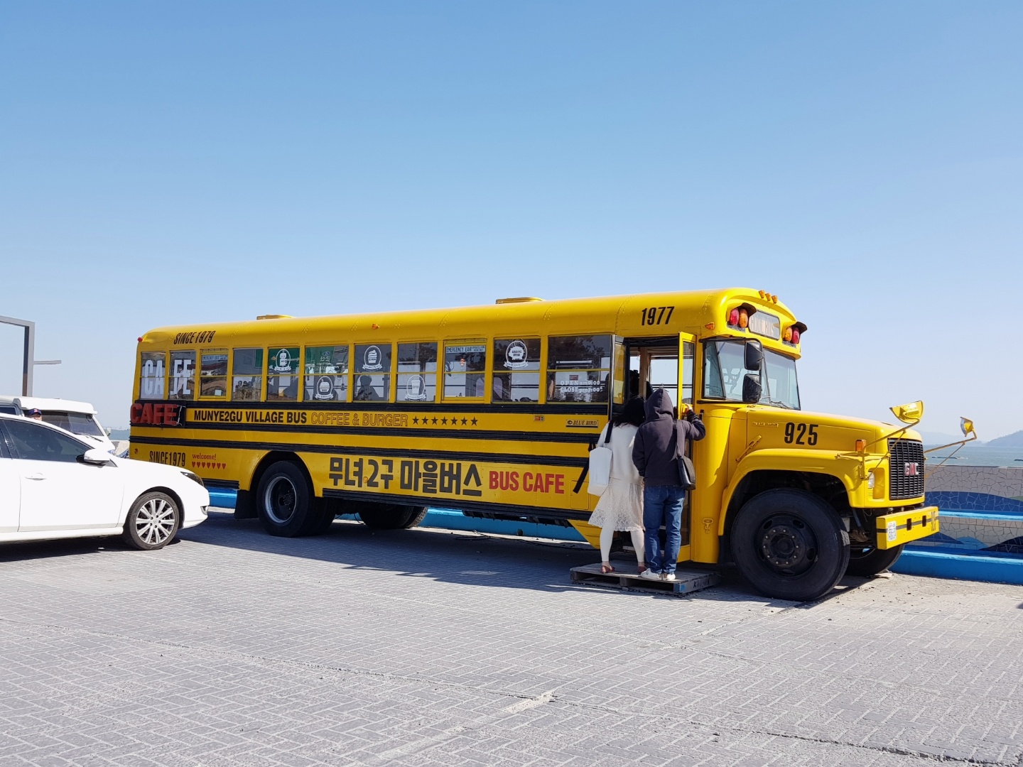 신시도에서 무녀도로 가는 다리를 지나자마자 좌회전을 하면 ‘무녀2구 마을버스 카페’가 있다. 이곳에서는 바다를 보며 커피를 마시거나, 수제 버거를 먹을 수 있다. 특히 창밖으로 보이는 바다와 더불어 카페와 마을버스 내부의 깔끔한 인테리어로 감성적인 사진을 찍기 제격이다.