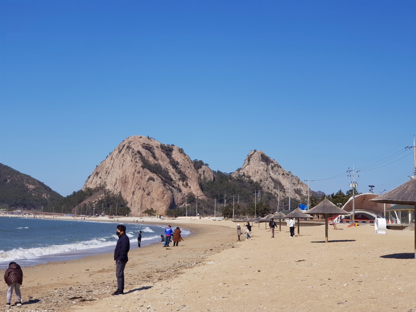 | ▲망주봉이 보이는 선유도의 명사십리 해수욕장 / 촬영 : 박주영 기자 |