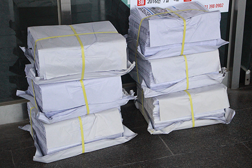 08.신문을외부또는내부로발송하기위한준비 과정인 접지를 한다.