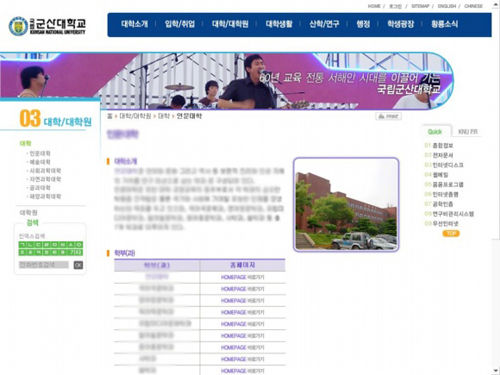 | ▲ 본교 홈페이지 대학/대학원을 통해 학과 홈페이지에 들어갈 수 있다. | ||