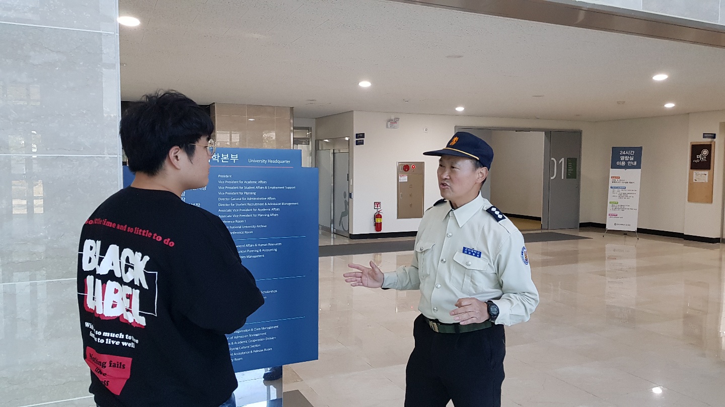 또 시간마다 순찰을 나가는데 밤에는 학생회관과 박물관 등등 문단속을 하는 일도 하고 있습니다.