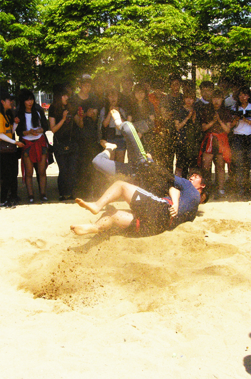 조건희 학생회장의 축사로 시작된 이번 황룡체전은 대운동장 및 사회대 운동장을 무대로 ▲구기 종목 △축구 △농구 △발야구 △피구 △족구 ▲단체종목 △줄다리기 △단체줄넘기 △400m계주 △씨름 △징검다리 등 11개 종목이 진행됐다. 이외에 작년에는 없던 특별 이벤트 ‘단과대학 학회장들의 기마전’이 눈에 띄었다.