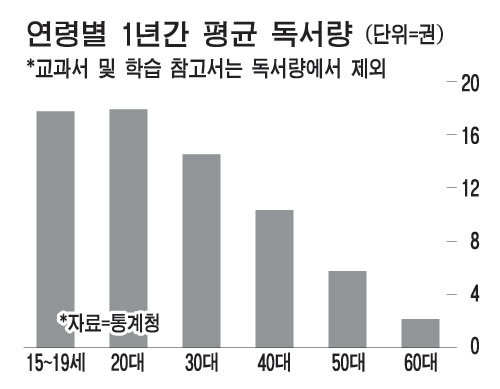 | ▲ 연령별 연 평균 독서량/출처: 매일경제 |