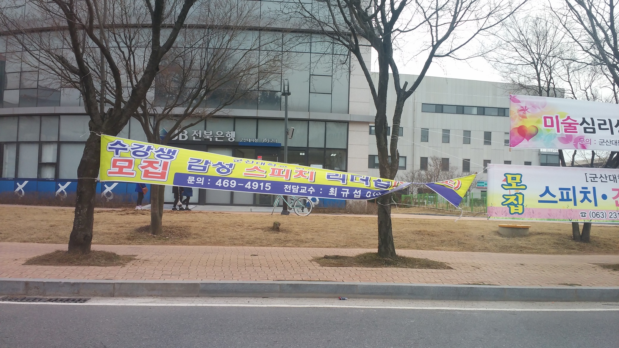 홍보 아닌 홍보 군산대언론사 2 2015-03-04 - 1분 걸림 - 댓글 남기기 미관을 해치는 관리가 안된 현수막 조속한 시일내에 재정비 되길 바랍니다. 교내 문제점이나 개선되어야 할 점 등에 대한 사진을 보내주세요. E-mail_wlgp3133@kunsan.ac.kr로 3월 19일까지 여러분들의 많은 제보 부탁드립니다. 작가와 대화를 시작하세요. 연재종료 군산대언론사 2 이메일로 받아보세요 지금 뉴스레터를 구독하세요. 이메일 주소를 입력하세요 무료 뉴스레터 구독