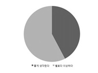 두 번째는 “우리 대학 학우들이 황룡이라고 묶였을 때 결속력·자부심 등을 느끼냐”는 질문에 대해서 총 64명 중 15명은 ‘그렇다’, 나머지 49명은 ‘아니다’라는 입장을 보였다. 앞의 질문과 달리 대다수가 부정적인 의견을 표했는데 이것을 백분위 할 경우 무려 75%가 부정적인 견해를 지녔다는 점이다. 또한 이는 우리 대학 학우들이 가령 ‘황룡인’이라고 묶였을 때 긍지와 소속감을 별로 느끼지 못함을 뜻한다.