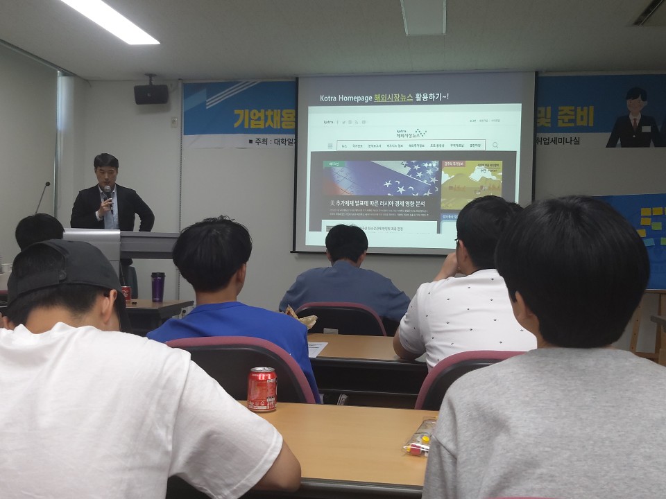 본 특강은 현재 대기업 인사담당 직원이 현재의 취업 트렌드에 대해 설명해주는 강의이다. 이는 우리 대학 재학생 전체를 대상으로 진행되었으며, 졸업 후 취직을 희망하는 사람들에게 구체적인 조언과 준비해야 할 사항 등을 설명하는 식으로 진행되었다.