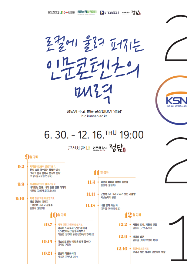 이처럼 현재 우리 지역의 ‘정담(情談)’은 다양한 ‘인문학 강좌’를 통해 독특한 군산 문화와 콘텐츠를 재발견하고 있다. 또 이로써 지역민에게 색다른 즐거움을 선사하고 있는데, 코로나19로 심신이 지친 이들에게 도움이 될 것으로 기대된다. 한창 강좌가 진행되고 있는 지금, 군산과 인문학의 조화를 느끼러 ‘정담(情談)’에 방문하는 것은 어떨까? 인문학의 가치는 물론 군산의 새로운 모습을 만날 수 있을 것이다.