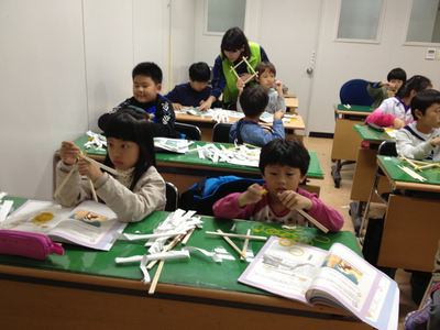 | ▲ 아이들이 우리대학 학생들과 과학실험을 하고 있는 모습 / 사진 : 생활과학교실 제공 |