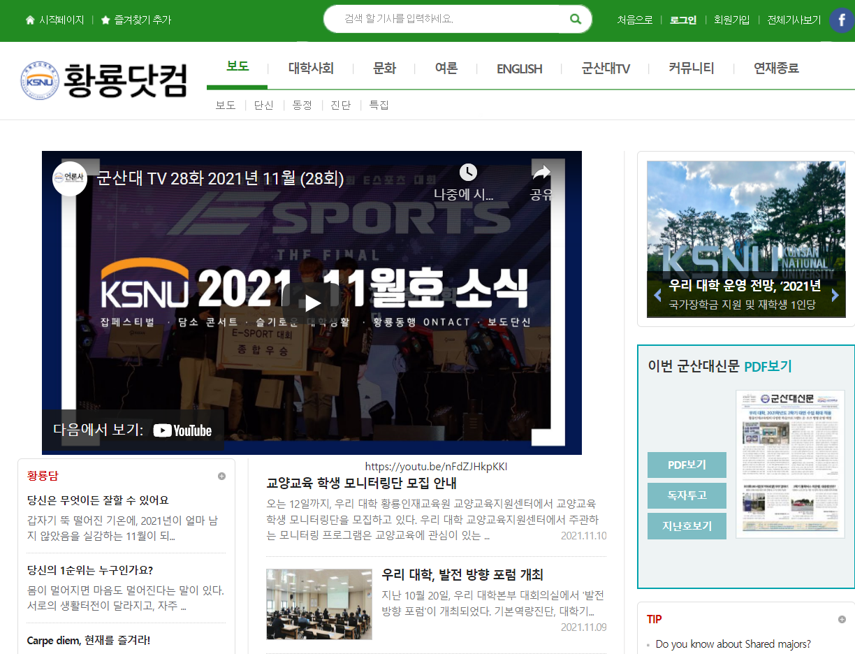HwangryongDotcom is a website where articles are published and uploaded once a month by our university press. On HwangryongDotcom, articles are classified by ▲ category, so you can find and read articles in the desired field. In addition, you can apply for a ▲ subscription to our university newspaper. If you access the subscription application page in the community category and enter the applicant information and postal recipient information, the subscription application is completed and you can receive our newspaper every month.