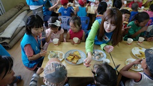 요리가 완성된 후 아이들에게 음식을 떠먹여 줄때, 난 너무나도 행복한 기분을 느꼈다. 어린 아이들에게 음식 떠먹여 주는 건 해외봉사를 가서 정말 해보고 싶은 일이었기 때문이다. 내가 만든 음식을 아이들이 맛있게 먹어줄 때의 기분은 정말이지 말로 표현할 수 없었다. 하지만 이곳 유치원에서는 종머드 중학교처럼 아이들과 정신적 교류가 없어서 많이 아쉬웠다.