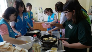 오늘 하루 중 가장 즐거웠던건 요리했던 시간이었다. 40명을 위한 무려 네 시간 동안의 준비. 야채를 씻고, 썰고, 볶고, 탕에 넣고. 하나씩 배워나갔다. 요리와는 전혀 친하지 않았던 내가, 요리에 관심을 갖게 된 순간이었다. 어떻게 만들어지는지 모두 눈으로 보고 경험하니까 다 만들어진 후, 더욱 맛있게 먹게 되었다. 감사하고 또 감사했다.