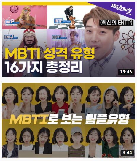 | ▲ MBTI 관련 영상 콘텐츠 / 출처: Youtube |