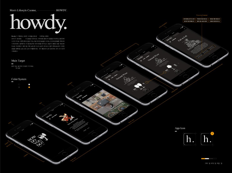 | ▲남성 쇼핑채널인 howdy를 기존 캐릭터와 프로모션한 ux디자인 / 출처 : 김민정 동문 |