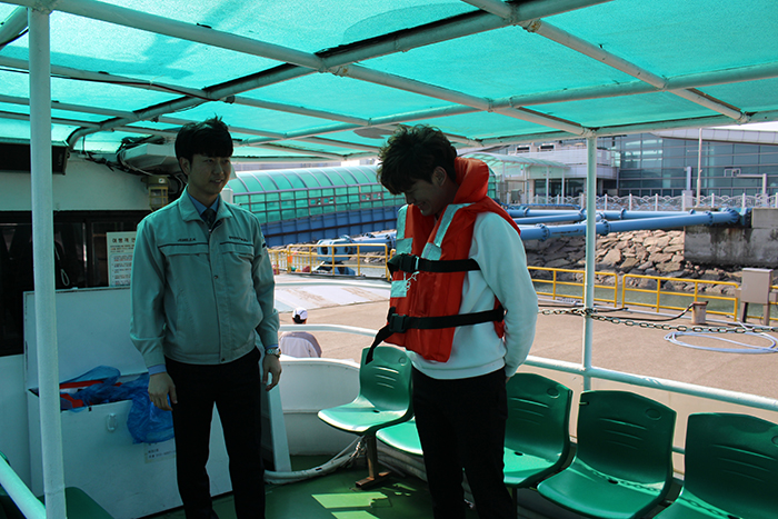오전9시,선유도로가는표를끊기위 해신분증을냈다.몇년전만해도신분증 확인없이매표를하고배에탑승할수있 었지만 세월호 사고 이후로 여객의 안전 문제가 대두되면서 표를 구매할 때도 본 인 확인을 의무화했다. 표를 구매하고 배 에탑승할때도다시한번본인확인을 했다.배에탑승한뒤정과장과함께선장 실을구경해볼수있었다.정과장은안 전관리자가 무엇을 하는 사람인지 자세히 설명해주셨다. 배에 구명조끼는 정원에 맞게 비치되어 있는지, 구명보트는 설치 되었는지, 정확한 승선 인원은 몇 명인지 등파악하여자필로적는것으로출항전 점검을 마무리했다. 안전관리자의 꼼꼼한 점검 끝에 우리는 쾌속선인 진달래호를 타고한시간정도후에안전하게선유도 에도착할수있었다.