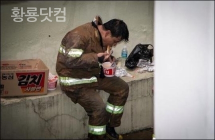 | ▲ 화재 진압 후 컵라면을 먹는 소방관 / 출처 : 데일리안 뉴스 |