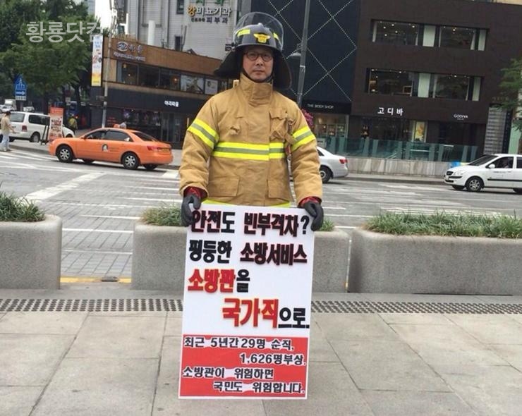 | ▲ 1인 시위 중인 소방관 / 출처 : 네이버 포스트 |