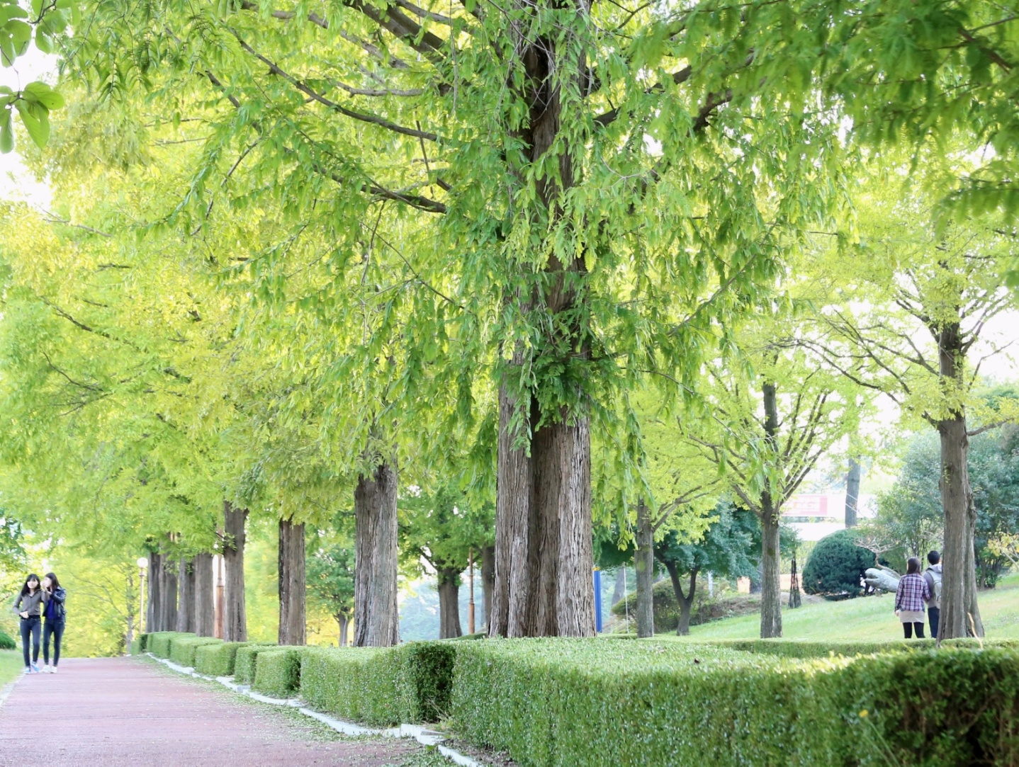 예술대학을 지나 제1학생회관 쪽으로 가는 길엔 ‘메타세쿼이아 길’이 있다. 메타세쿼이아란, 은행나무나 소철처럼 공룡이 살던 시대부터 함께 살아온 오래된 나무를 뜻한다. 거리를 감싸고 있는 메타세쿼이아는 초록빛의 싱그러움과 붉은빛의 정열을 오가며 계절마다 색다른 매력을 뽐내곤 한다. 이 거리 주변에는 벤치도 놓여있으니 나무와 경치를 바라보며 휴식을 취하는 것도 좋다.