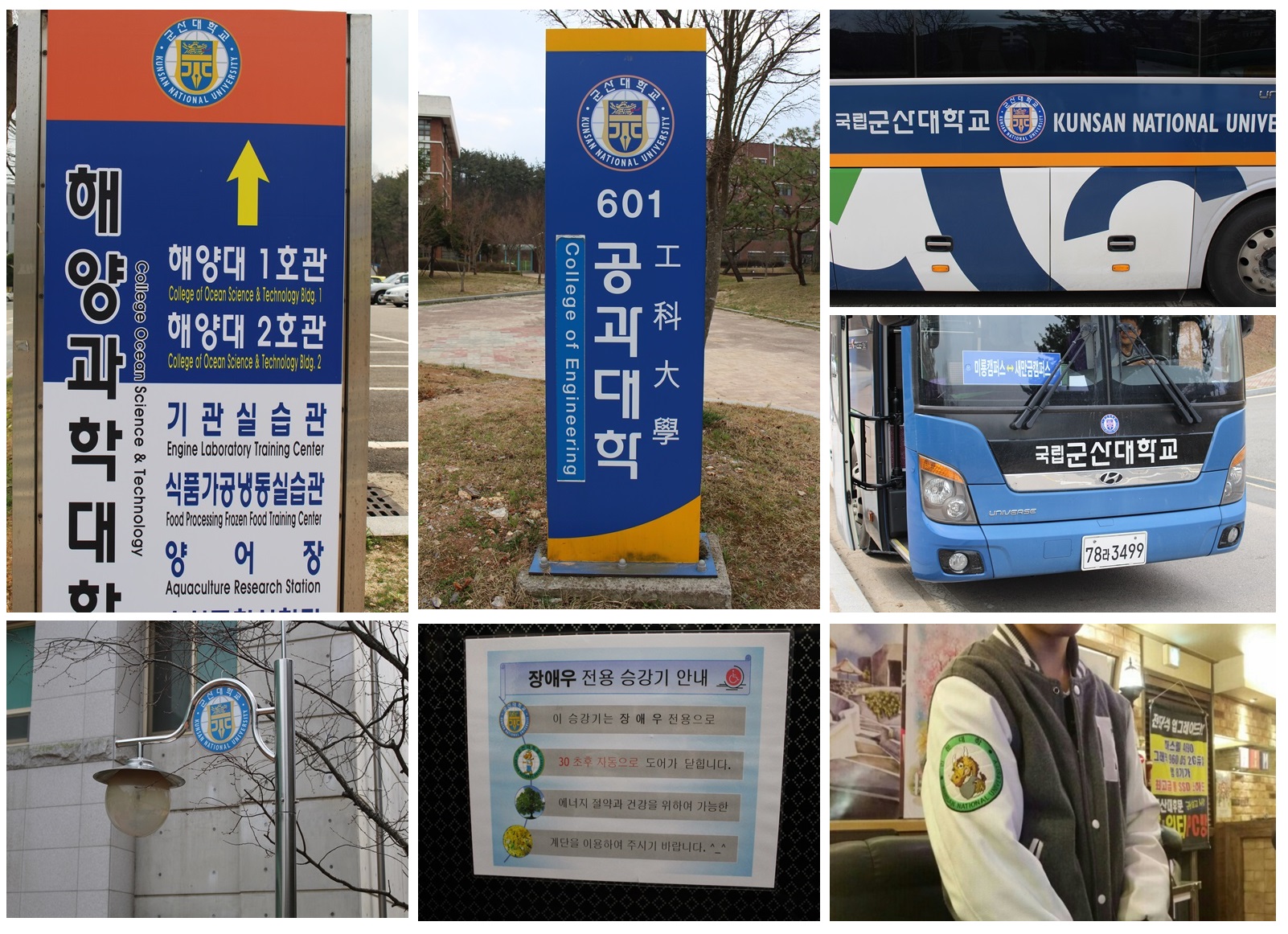 특히 우리 대학의 정장·문장에는 황룡이 들어가 있는데, 이러한 정장·문장은 우리 대학 곳곳에서 발견할 수 있다. △안내판 △가로등 △버스 △건물 △교기 등 일상에서 쉽게 볼 수 있는 물체에도 ‘황룡’을 담은 정장·문장이 존재한다. 그런데 이러한 정장·문장에는 많은 상징들이 들어가 있는데, 우선 주변을 둘러 싼 방패 모양은 지성과 의지를 나타낸다. 중앙의 ㄱ, ㅅ, ㄷ는 ‘군산대’의 초성을 의미하며, 외곽의 U는 대학이란 뜻의 University를 상징한다. 방패 중앙 위에서 불을 내뿜는 황룡은 △진리 탐구 △문화 창조 △사회봉사를 의미하고 ‘ㅂ’의 기본형은 배를 상징화한 것이다. 그리고 황룡은 단과대학마다 캐릭터화돼 각각을 상징하고 있는데, 안타깝게도 이를 일상에서 찾기는 매우 힘들다.