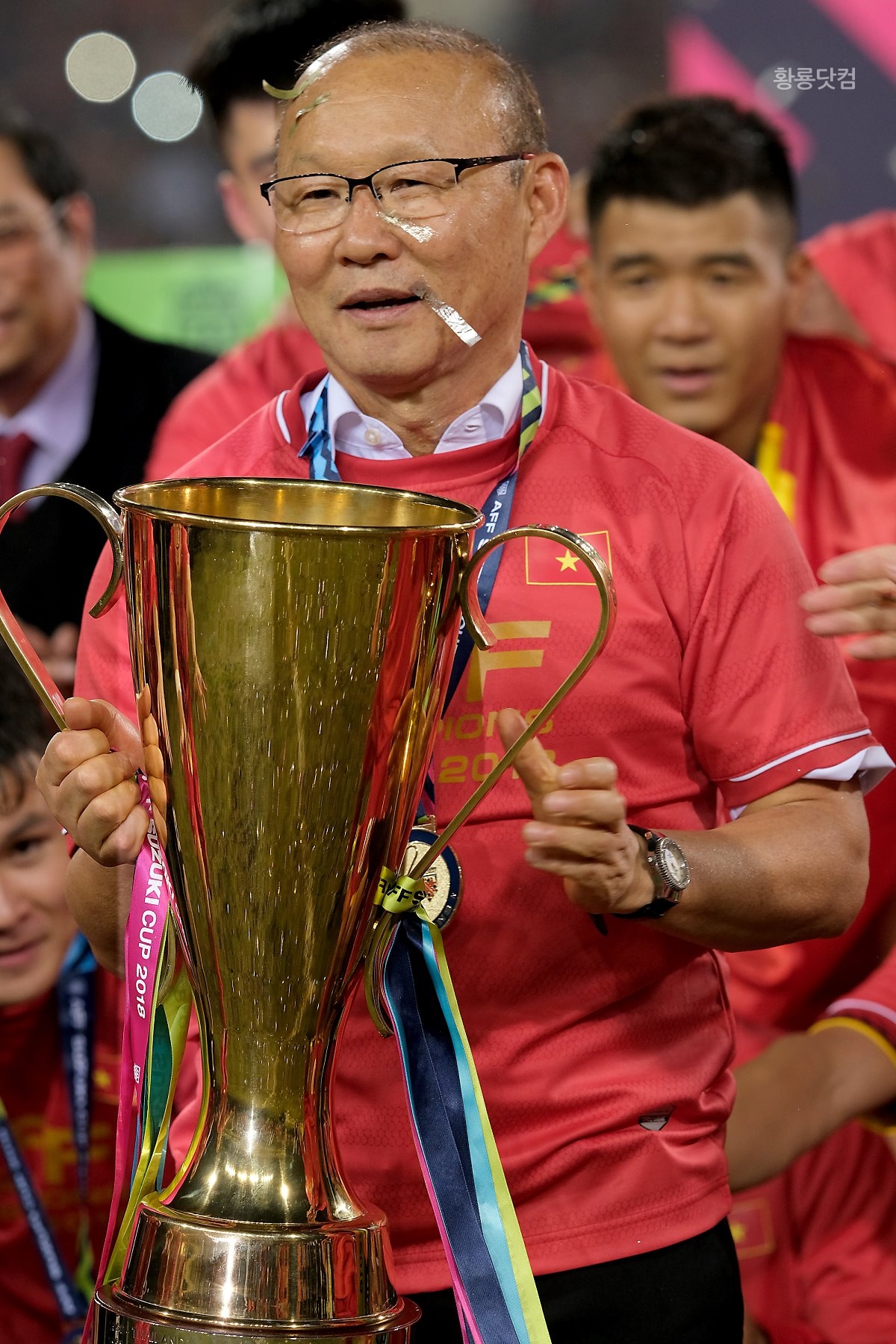 | 사진2:▲Park Hang-seo, Vietnam's football team coach who holds the trophy./ Source: Getty Image Korea |