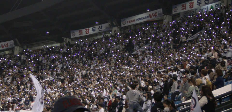 | (▲휴대폰 플래시로 단체응원을 하고 있는 두산베어스의 팬들 / 출처 : 두산베어스) |