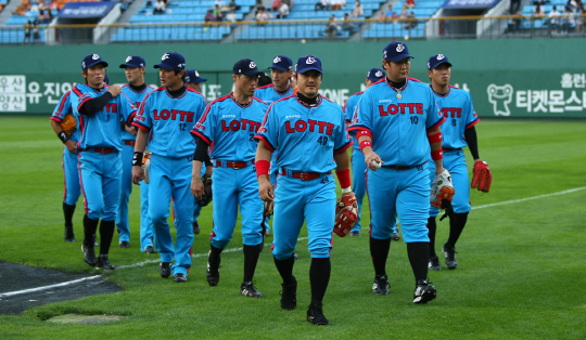 | (▲챔피온스데이를 맞아 롯데자이언츠의 구유니폼을 입고 있는 선수들 / 출처 : 이데일리 ) |