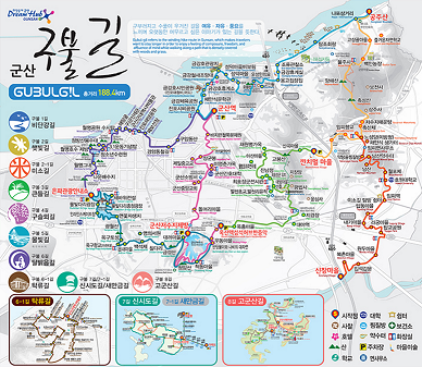 구불길은 久(오랠 구)에 ?(풀 우거질 불)인 길로, 이리저리 구부러지고 수풀이 우거진 길을 여유, 자유, 풍요를 느끼며 오랫동안 머무르고 싶은 이야기가 있는 군산도보여행길을 뜻한다. 크게 열 길로 구분되어있는데 문화유적이나 여러 산, 가옥 등으로 그 길마다 각각의 특성이 고스란히 녹아있다.