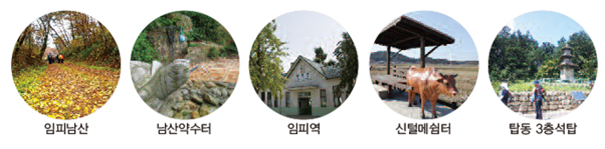 구불2-1길은 미소길로 총거리는 18.7km이고 총 306분이 소요된다. 미소길은 임피향교에서 시작해 근대역사자원인 임피역을 지나 탑동마을에 이르른다. 탑동들노래가 전승되고 있는 이 마을의 3층 석탑은 백제양식으로, 익산왕궁탑과 얽힌 재미난 전설이 전해지는데 사실일까라는 생각에 절로 웃음 지어지는 길이다.